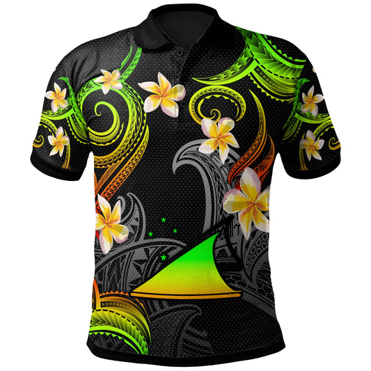 Tokelau Polo Shirt - Custom Personalised Polynesian Waves with Plumeria Flowers (Reggae)