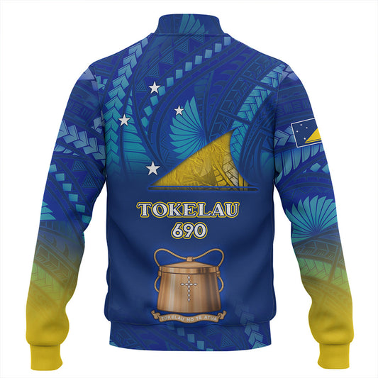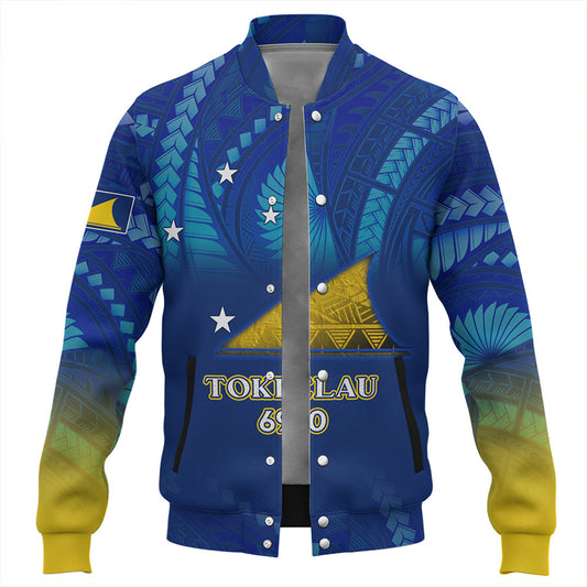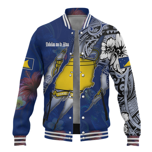 Tokelau Baseball Jacket Custom Tokelauan Blood Inside Me Polynesian Sleeve Tattoo Tropical Blue