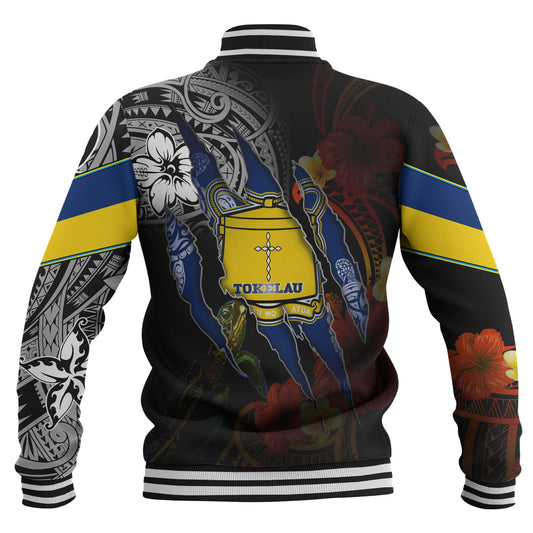 Tokelau Baseball Jacket Custom Tokelauan Blood Inside Me Polynesian Sleeve Tattoo Tropical Black