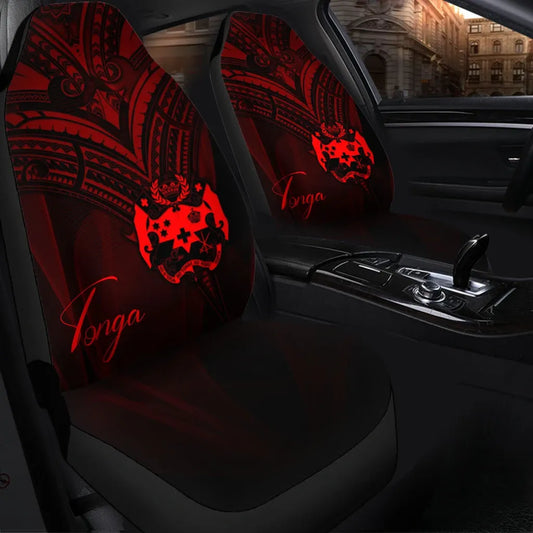 Tonga Custom Personalised Car Seat Covers - Tonga Coat Of Arms Polynesian Red Curve