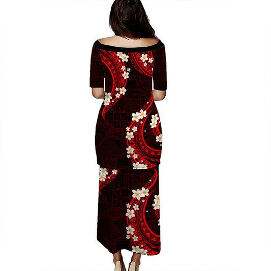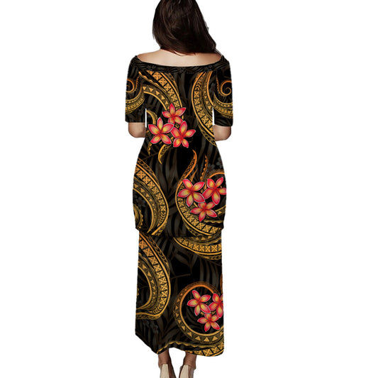 Tonga Puletasi Tribal Plumeria Drawring Tribal Polynesia