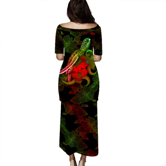 Tonga Puletasi - Sea Turtle With Blooming Hibiscus Flowers Reggae