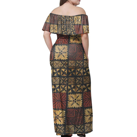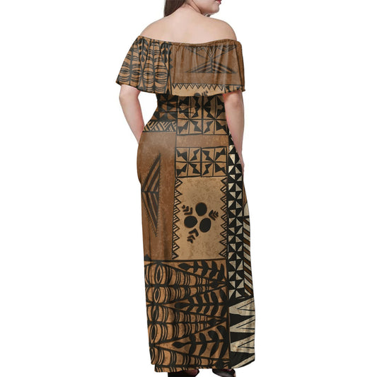 Tonga Ngatu Design Woman Off Shoulder Long Dress