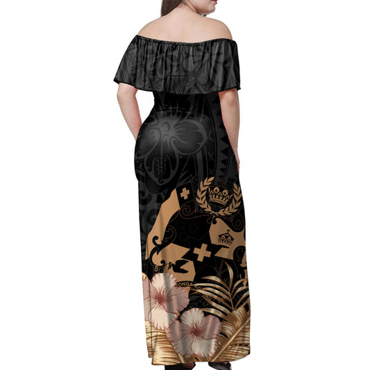 Tonga Woman Off Shoulder Long Dress Polynesian Gold Plumeria