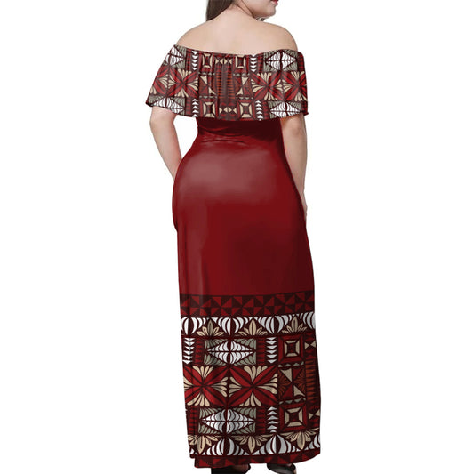 Tonga Off Shoulder Long Dress Tongan Ngatu Pattern