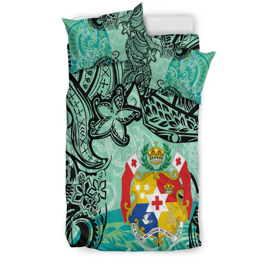 Tonga Bedding Set - Tonga Coat Of Arms With Polynesian Patterns