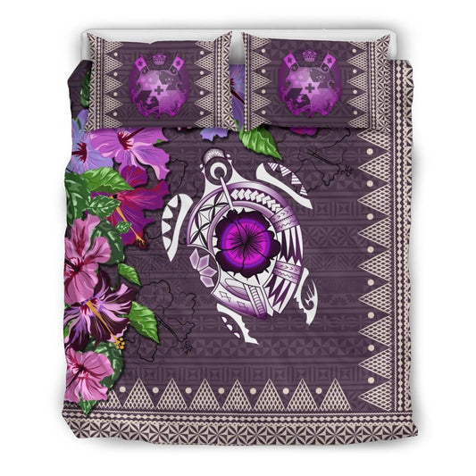 Tonga Duvet Cover Set - Tonga Coat Of Arms & Purple Hibiscus