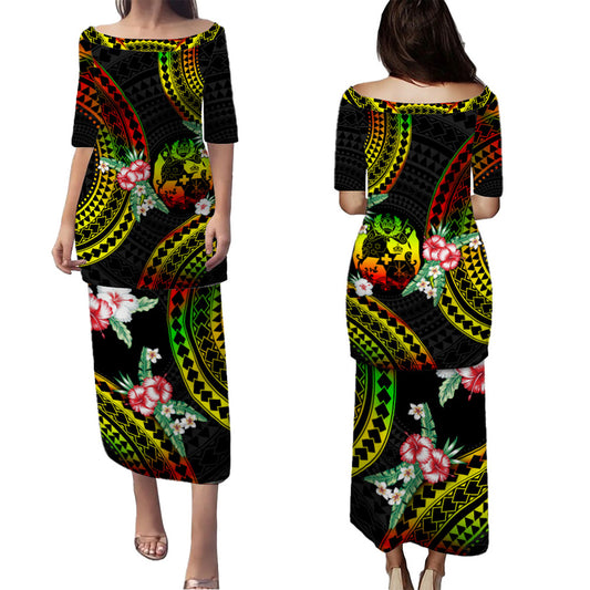 Tonga Combo Puletasi And Shirt Polynesian Pattern Reggae Color Hibiscus Flowers