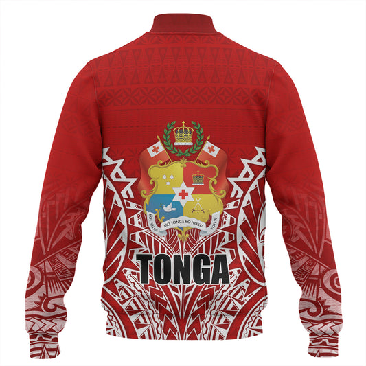 Tonga Baseball Jacket Custom Tribal Pattern Coat Of Arms