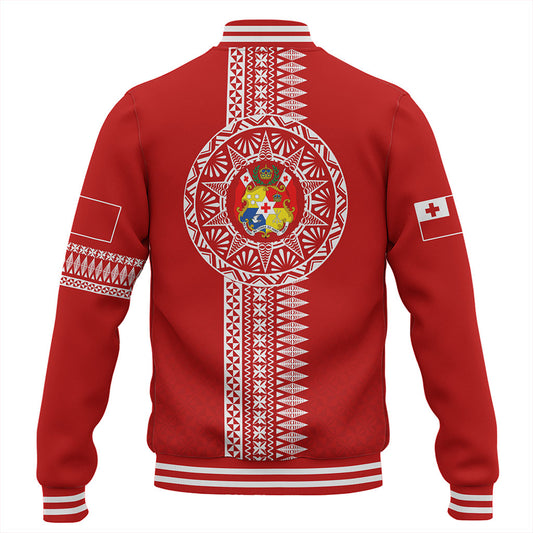 Tonga Baseball Jacket - Custom Coat Of Arms With Patterns Flag Color