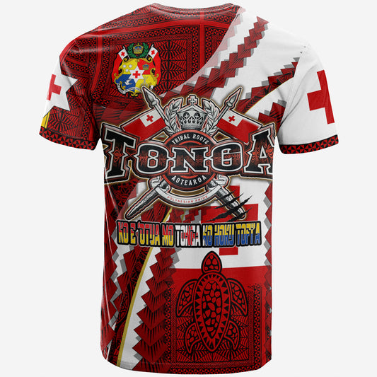 Tonga Aotearoa Tribal Roots T-Shirt - Custom Tonga Polynesian Pride With Coat Of Arms And Tonga Map Kupesi T-Shirt