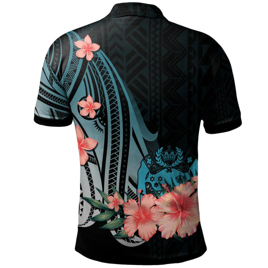 Tonga Polo Shirt - Turquoise Polynesian Hibiscus Pattern Style