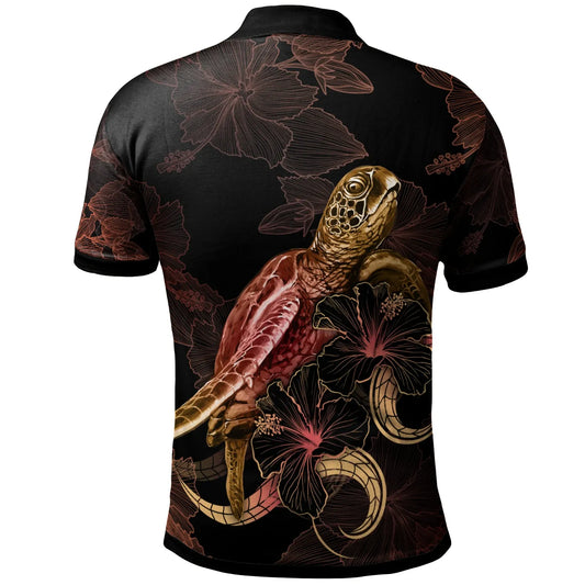 Tonga Custom Personalized Polynesian Polo Shirt - Turtle With Blooming Hibiscus Gold