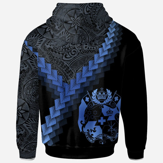 Tonga Hoodie - Tonga Coat Of Arms With Polynesian Tattoo Blue