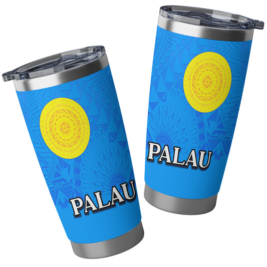 Palau Flag Color With Traditional Patterns Tumbler