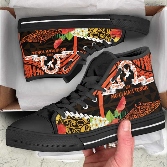 Tonga High Top Shoes - Tupou College Polynesian Tonga Pattern with Flower