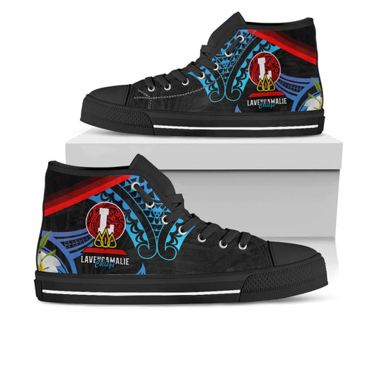 Tonga High Top Shoes - Lavengamalie College with Polynesian Patterns and Plumeria Flower