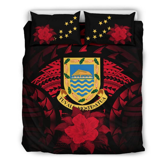 Tuvalu Duvet Cover Set - Tuvalu Coat Of Arms & Red Hibiscus