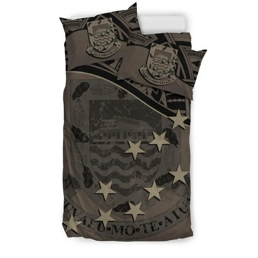 Tuvalu Duvet Cover Set - Coat Of Arms & Flag Brown