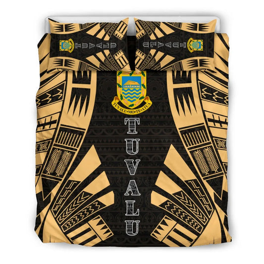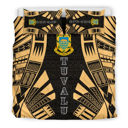 Tuvalu Duvet Cover Set - Polynesian Tattoo Gold