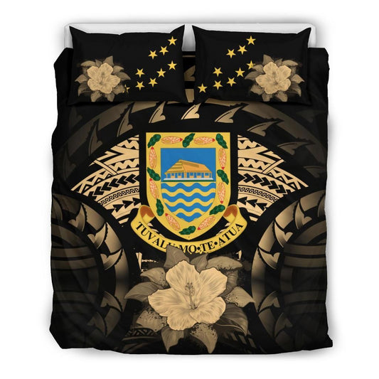 Tuvalu Duvet Cover Set - Tuvalu Coat Of Arms & Gold Hibiscus