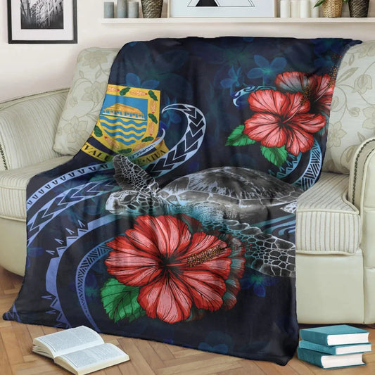 Tuvalu Polynesian Premium Blanket - Blue Turtle Hibiscus