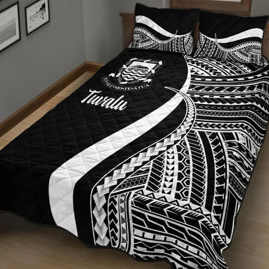 Tuvalu Quilt Bed Set - White Polynesian Tentacle Tribal Pattern