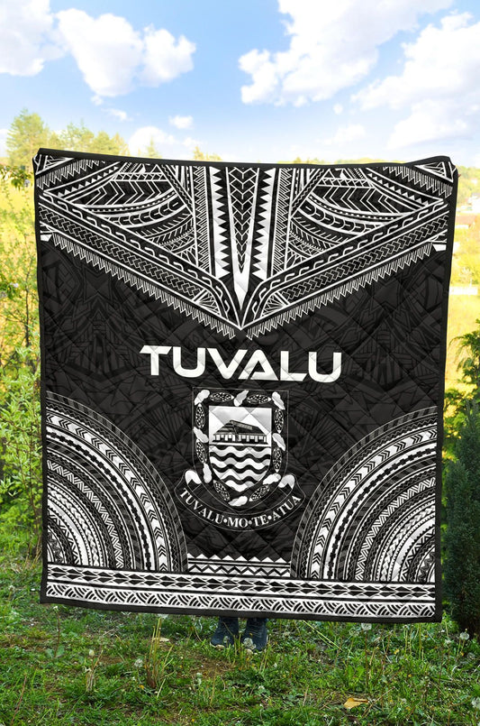 Tuvalu Premium Quilt - Tuvalu Coat Of Arms Polynesian Chief Black Version