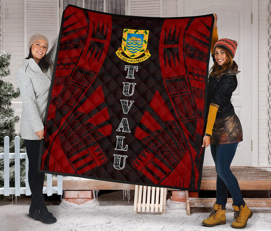 Tuvalu Premium Quilt - Tuvalu Coat Of Arms Polynesian Red Tattoo