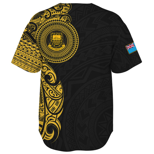 Tuvalu Baseball Shirt Custom Polynesian Half Sleeve Gold Tattoo With Seal Black