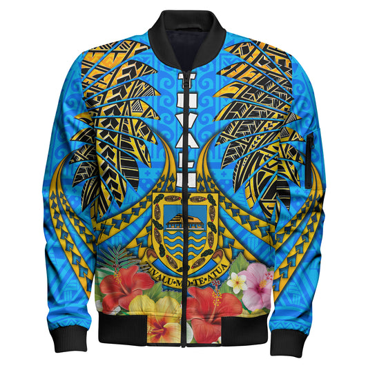 Tuvalu Polynesian Bomber Jacket - Tuvalu Independence Day with Polynesian Hibiscus