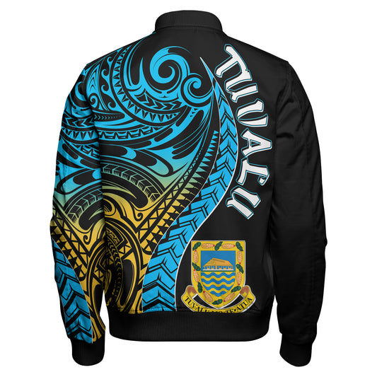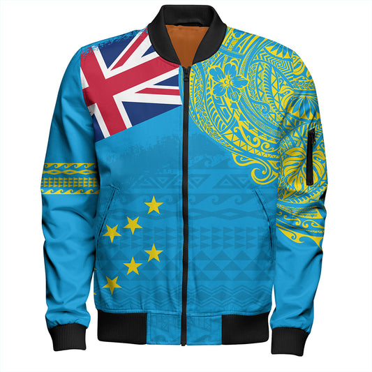 Tuvalu Bomber Jacket Flag Color With Traditional Patterns