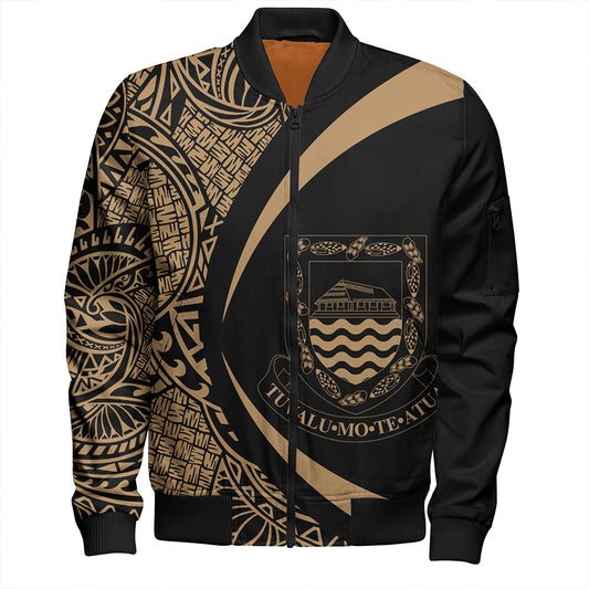 Tuvalu Bomber Jacket Coat Of Arm Lauhala Gold Circle
