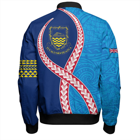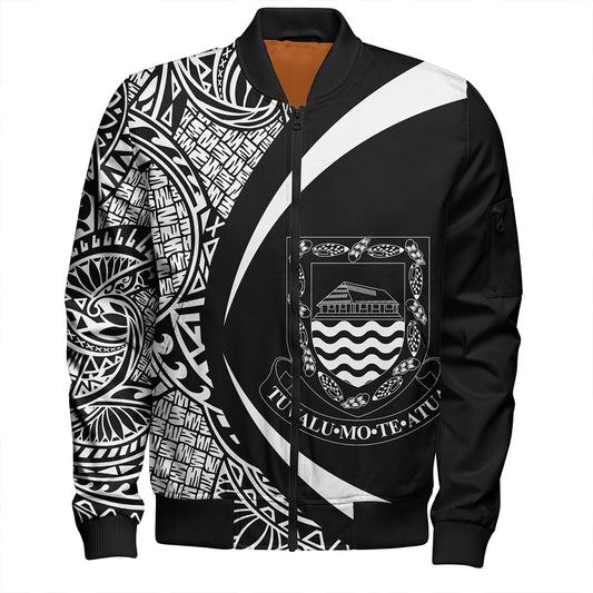 Tuvalu Bomber Jacket Coat Of Arm Lauhala Circle