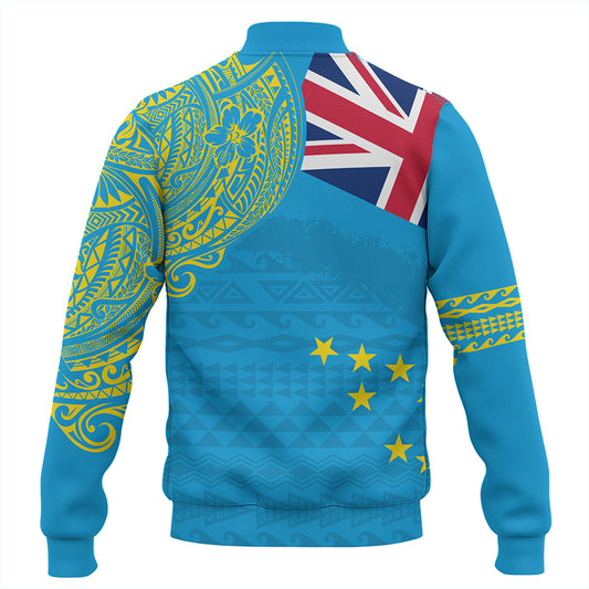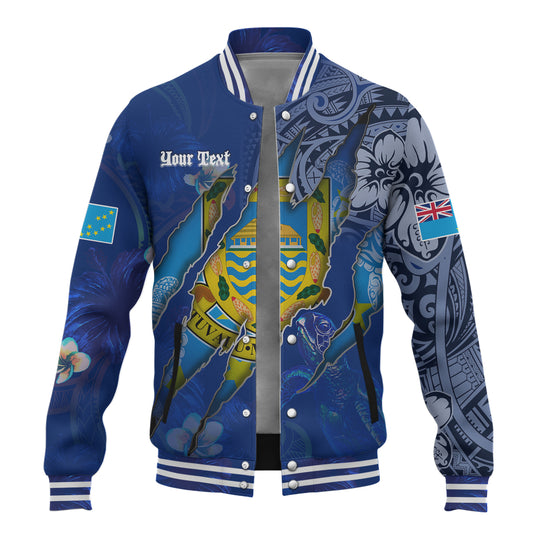 Tuvalu Baseball Jacket Custom Tuvaluan Blood Inside Me Polynesian Sleeve Tattoo Tropical Blue