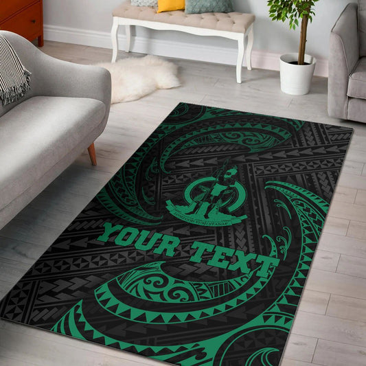 Vanuatu Polynesian Custom Personalised Area Rug - Green Tribal Wave