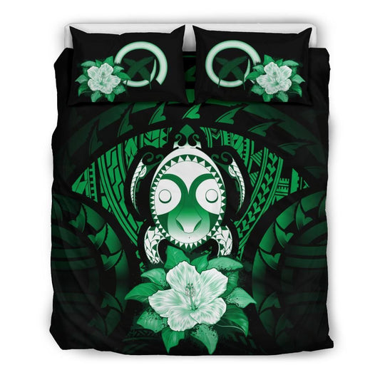 Vanuatu Duvet Cover Set -Turtle Tiki Face & Green Hibiscus