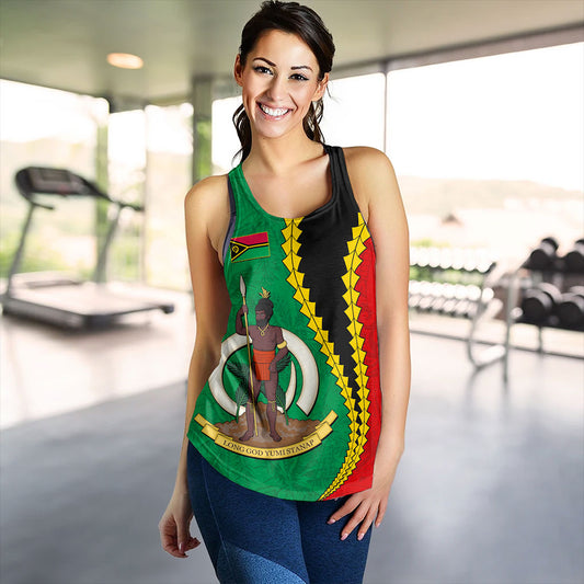 Vanuatu Women Tank Tribal Coat Of Arms With Flag Independence Day