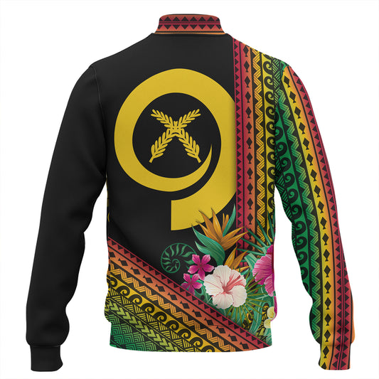 Vanuatu Baseball Jacket Polynesia Pattern With Tropical Flower