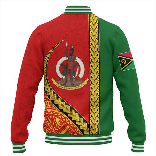 Vanuatu Baseball Jacket Tribal Melanesian Flag And Coat Of Arms