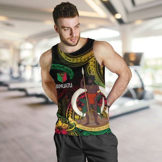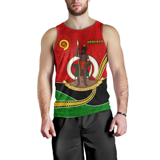 Vanuatu Tank Top Tribal Coat Of Arms With Flag Independence Day