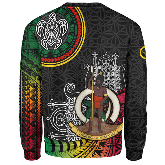 Vanuatu Sweatshirt Custom Vanuatu Seal Mutis En Atan Patterns Reggae Color