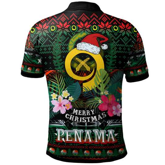 Penama Polynesian Christmas Polo Shirt - Custom Penama Vanuatu Coat of Arms Christmas Hat Polynesian Patterns Polo Shirt
