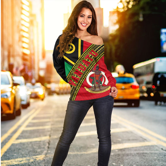 Vanuatu Off Shoulder Sweatshirt Melanesia Flag And Coat Of Arms