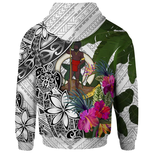 Vanuatu Hoodie White - Turtle Plumeria Banana Leaf