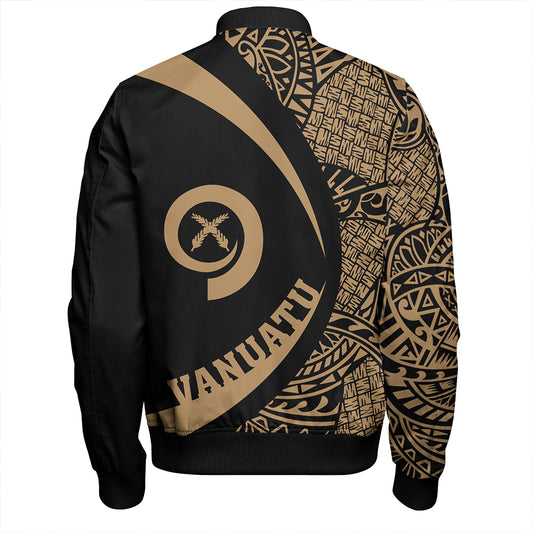 Vanuatu Bomber Jacket Coat Of Arm Lauhala Gold Circle