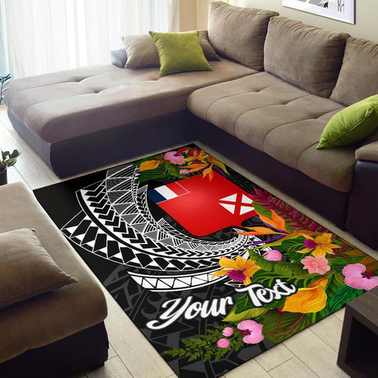 Wallis and Futuna Polynesian Custom Personalised Area Rug - Coat Of Arm With Hibiscus