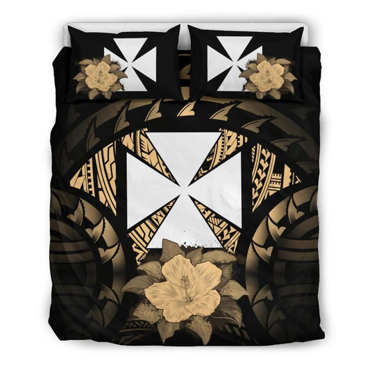 Wallis And Futuna Duvet Cover Set - Wallis And Futuna Coat Of Arms & Gold Hibiscus