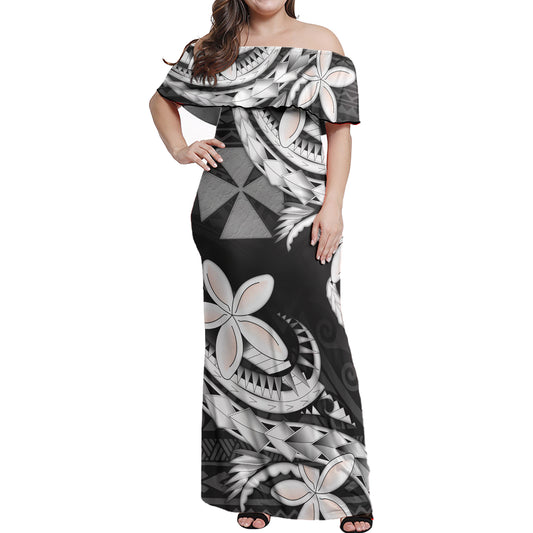 Wallis And Futuna Combo Off Shoulder Long Dress And Shirt Polynesian Patterns Plumeria Flowers Special Style
