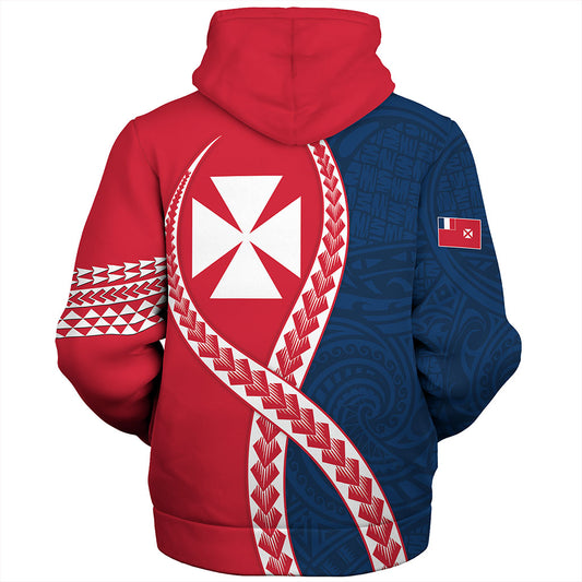 Wallis And Futuna Sherpa Hoodie Flag Color With Traditional Patterns